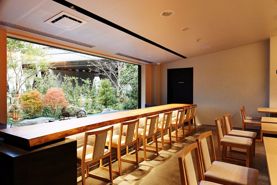 賑やかなマルシェエリアとは打って変わって、日本庭園を眺められる上質な空間。少し背筋が伸びるような、でもホッとする時間を過ごすことができますよ。