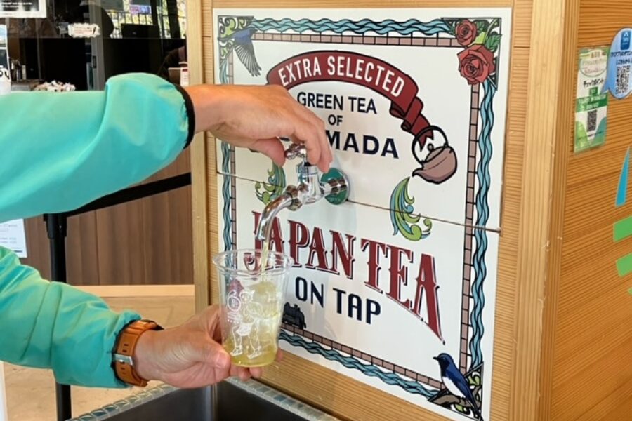 おおいなびには「蛇口をひねるとお茶が出る水道」が実在します! 私も体験してみましたが、本当に緑色の美味しい冷茶が出てきて感動しました。ぜひ専用カップを買って試してみてください!