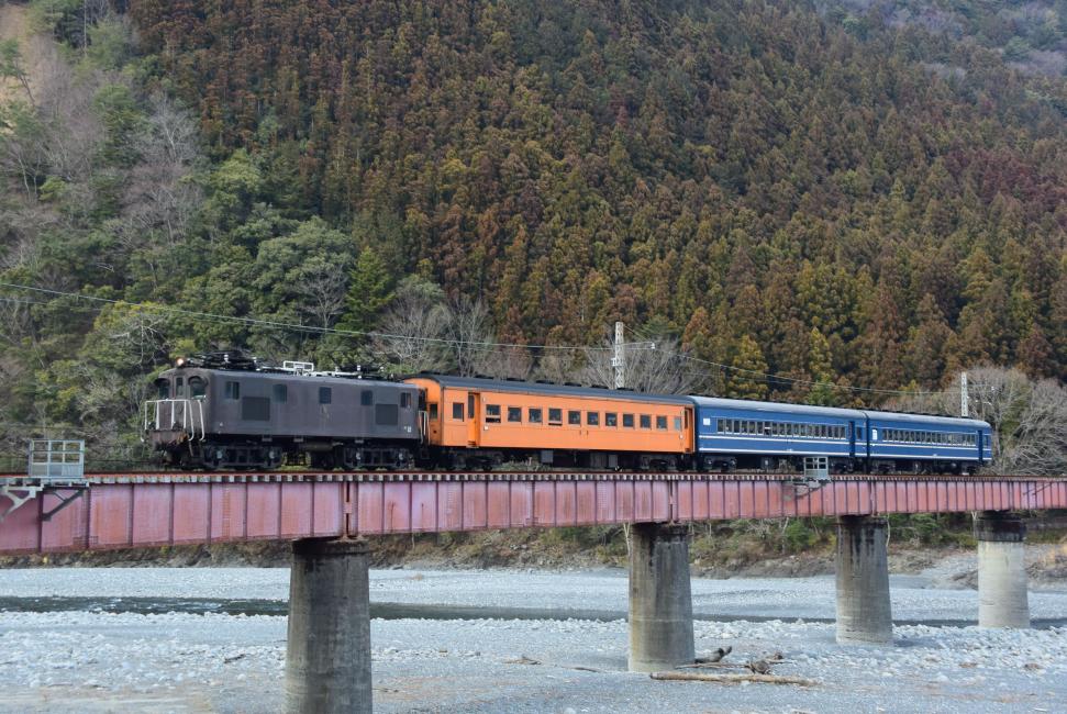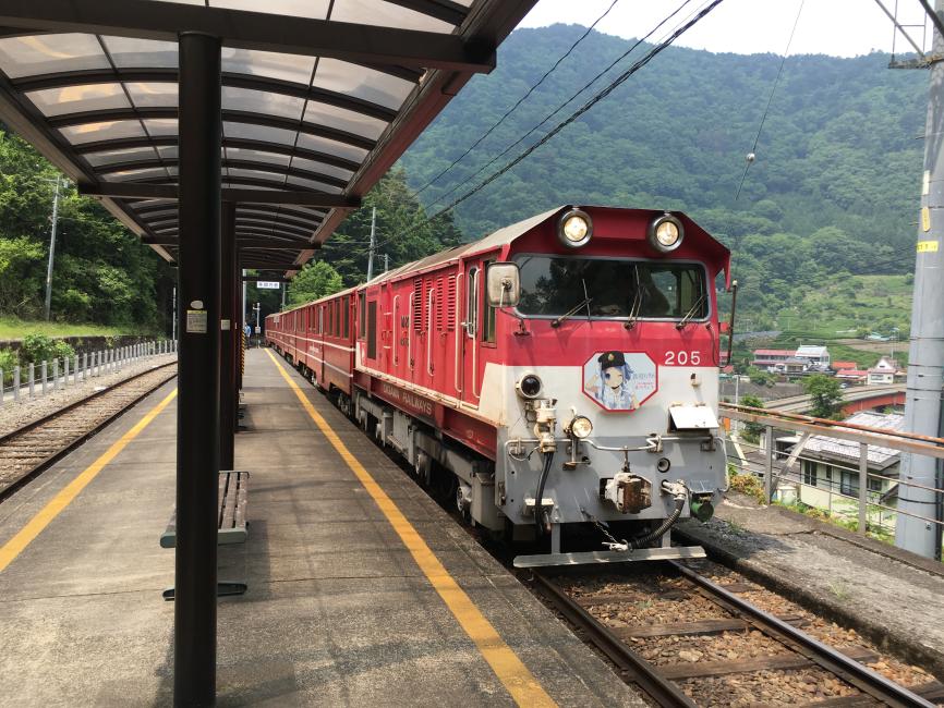 오쿠오이코조역(奥大井湖上駅)에서 산악열차를 타고 내려옵니다
