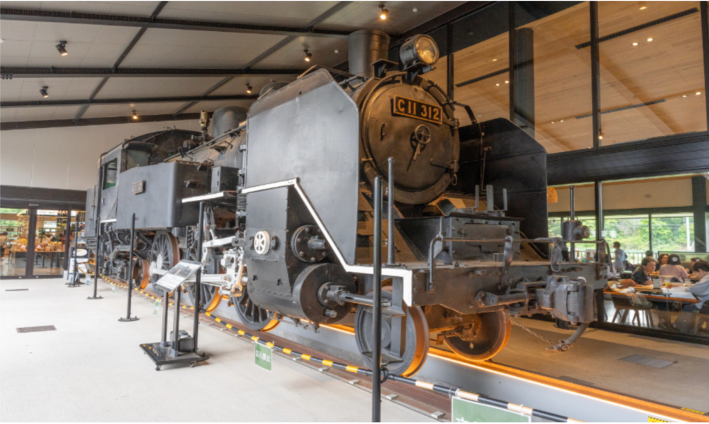 증기기관차의 통과 시간과 타이밍이 맞지 않아도 시설에는 증기기관차가 전시되어 있기 때문에 SL 소프트 아이스크림을 나란히 두고 사진 촬영도 할 수 있습니다. 꼭 방문해 보세요.