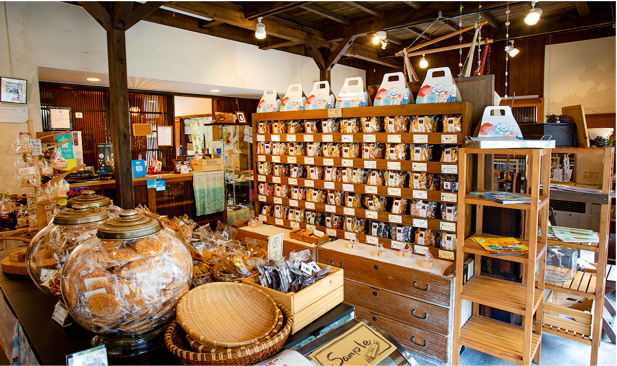 총 60종의 센베이가 즐비한 스마타쿄에서 인기 있는 기념품 가게&카페