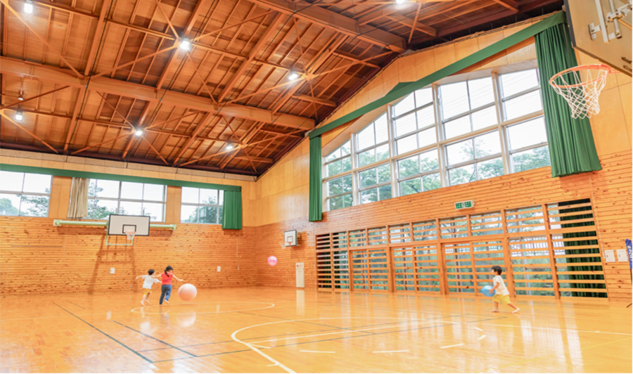 비오는 날도 체육관이 있으니 괜찮아요. 놀이도구는 자유롭게 빌려 놀 수 있습니다. 5~9월에는 나이트풀도 OK♪교사에는 탁구 등도 즐길 수 있는 놀이방도 완비되어 있습니다.