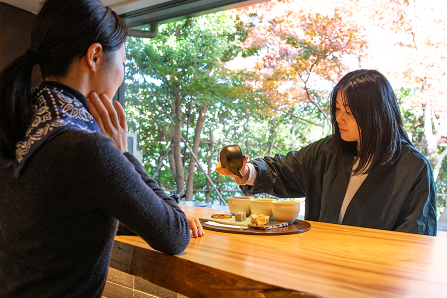 여기에서는 일본차 강사나 컨시어지가 공항 주변 지역의 풍부한 자연이 길러낸 ‘가네·카나야·후지에다’ 산의 희귀한 최고급 찻잎을 엄선하여 맛보게 해줍니다.