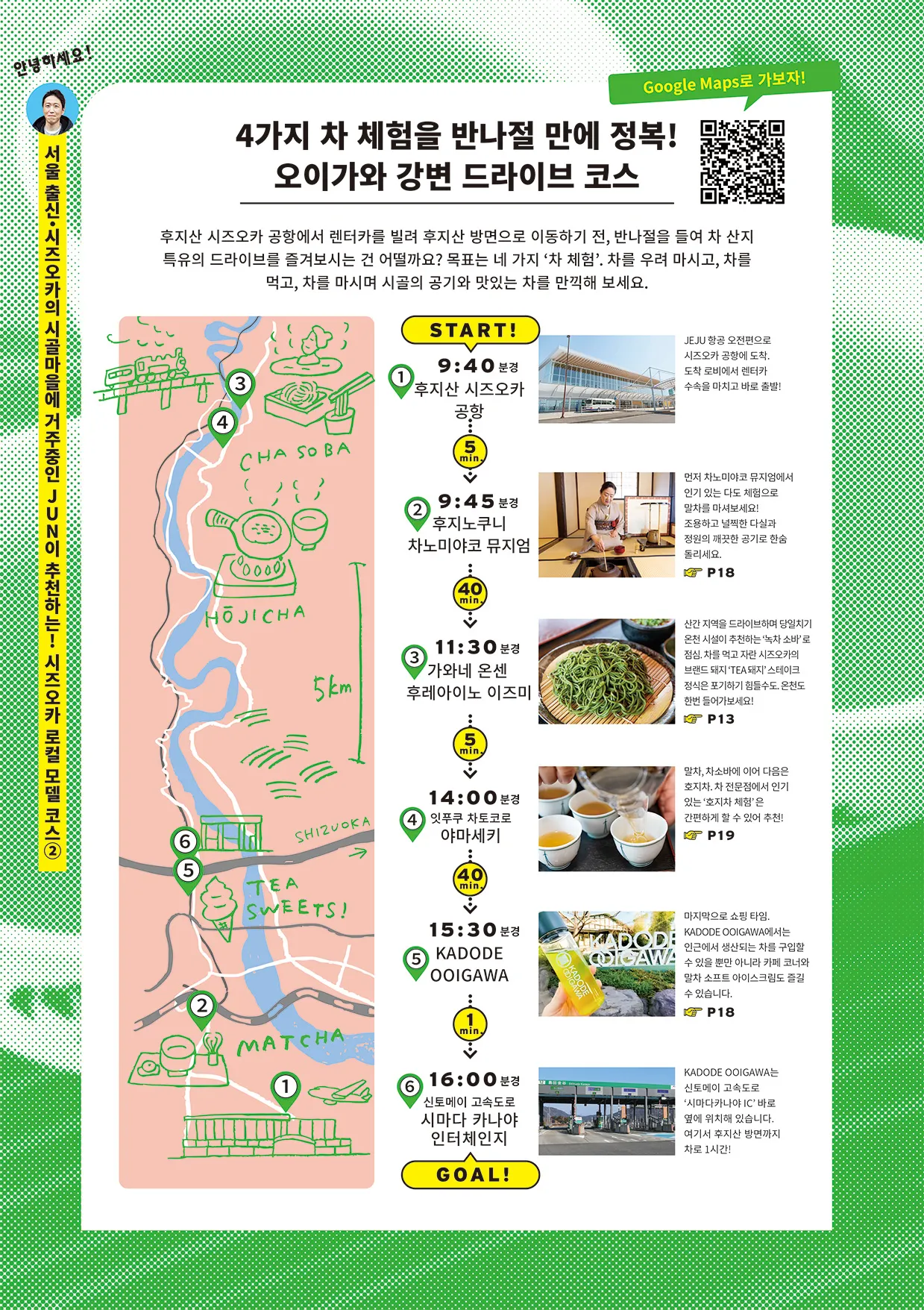차 산지 특유의 드라이브를 즐겨보시는 건 어떨까요? 목표는 네 가지 ‘차 체험’.