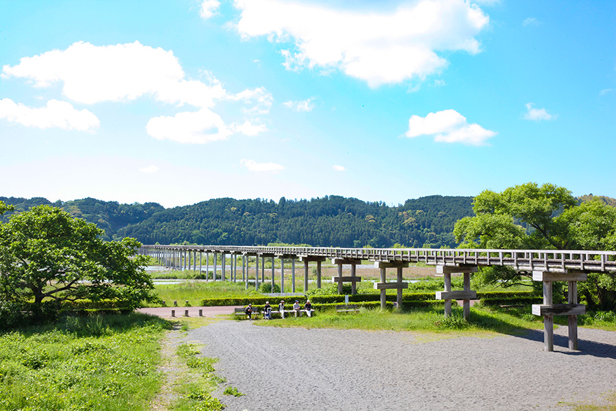 후지산 시즈오카 공항에서 차로 약 20분 거리. 여기에 세계에서 가장 긴 목조 보행자 전용 다리가 있습니다. 길이는 897.4m. 시즈오카에 오셨다면 한번 건너 보세요! 날씨에 따라서는 후지산도 보입니다.